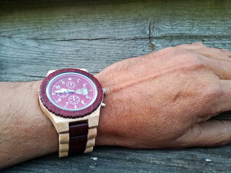Dit horloge ziet er mooi uit vanwege de 2 kleuren, en Jeroen kan het werkelijk overal bij dragen. Gewoon bij een casual outfit maar ook heel goed met een net overhemd. Omdat het van hout is heeft het een “robuuste” uitstraling, terwijl het horloge nauwelijks iets weegt.