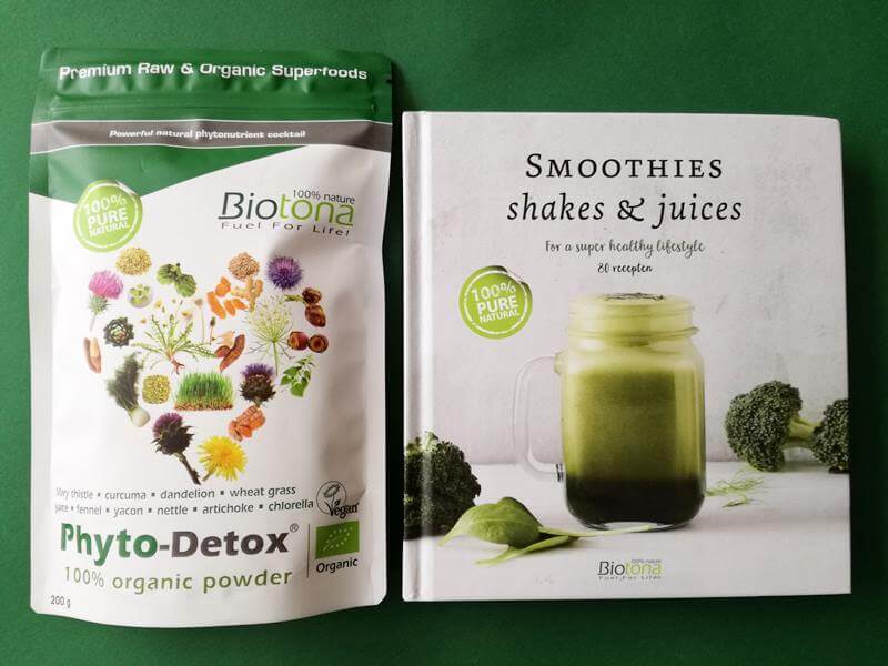 Ik heb het vaker gezegd, af en toe je lichaam detoxen is niet zo een slecht idee. Ons lichaam stapelt in de loop der jaren allerlei gifstoffen op en zeker als je zoals ik veel medicijnen moet slikken, dan is een detox kuurtje goed om je lichaam enigszins te resetten. Biotona Phyto- Detox heeft een mix die vol zit met allerlei ingrediënten om je lichaam te laten detoxen. Ook kreeg ik een receptenboekje vol met lekkere recepten voor smoothies & juices van Biotona. Kijk maar mee als je nog een lekker recept voor een powerdrink zoekt!