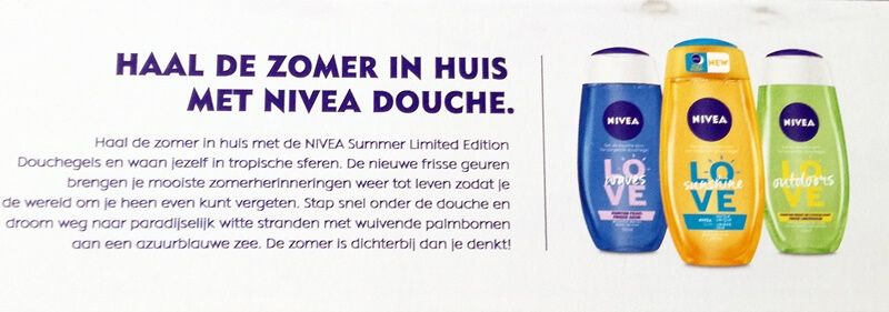Krijg je toch gelijk een zomers gevoel van? Nivea is en blijft erg prettig. Vind de verpakkingen heel erg festival-like.