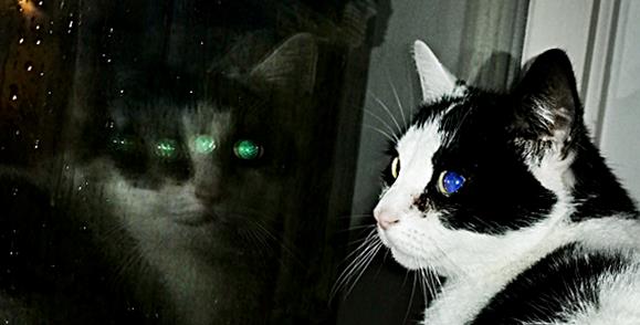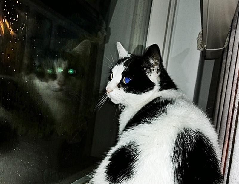 Van de week maakte ik deze foto… Kijk eens hoe raar, Marie kijkt naar links, maar in de weerspiegeling van de ruit…?