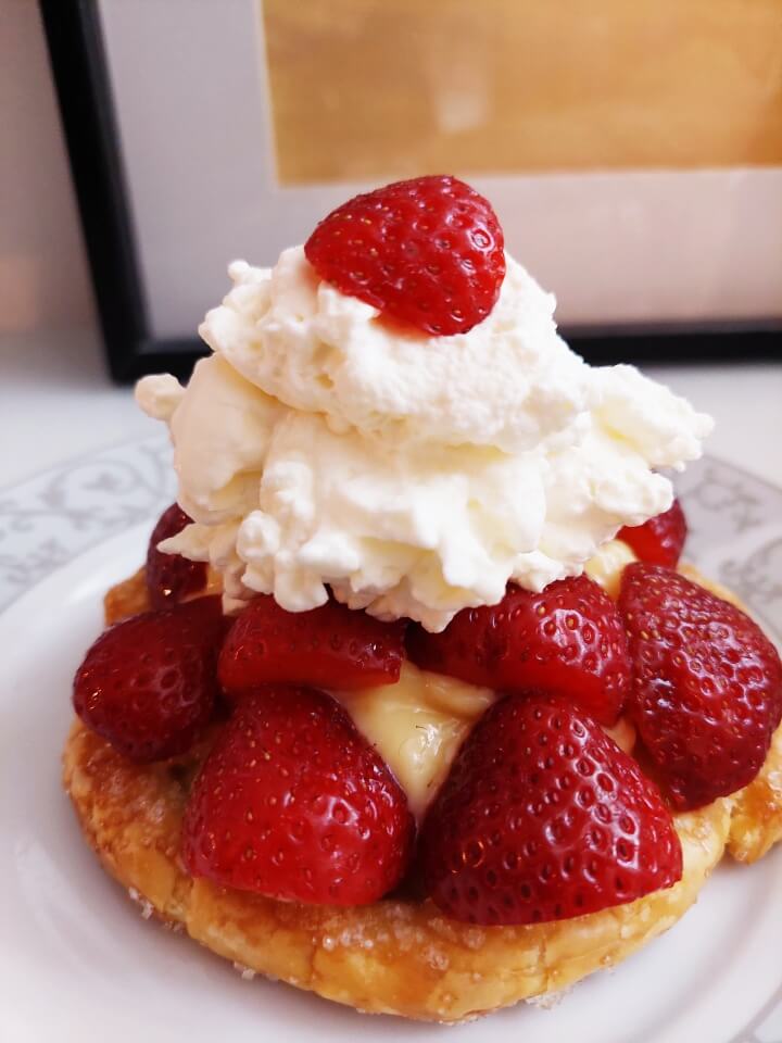 Jeroen maakte met bladerdeeg een cupje met banketbakkersroom en aardbeien. Simpel maar lekker en vers!