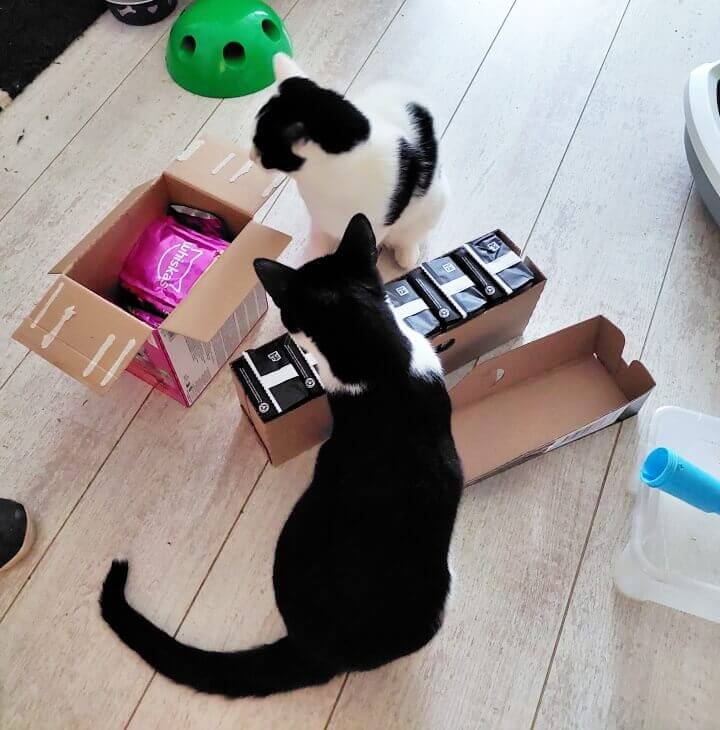 Van mijn trouwe volger en vriendin Ilona kregen ze heerlijke hapjes voor hun verjaardag en ze hebben er heerlijk van gesmuld. Wij hadden ook wat luxere cupjes eten gehaald en zo voelde het echt meer aan dat ze jarig waren. Enig nadeel is dat ze afwachtend kijken als ik weer hun “gewone hap” neerzet. Dan kijken ze mij zo aan van: “Is dat het?” 😉