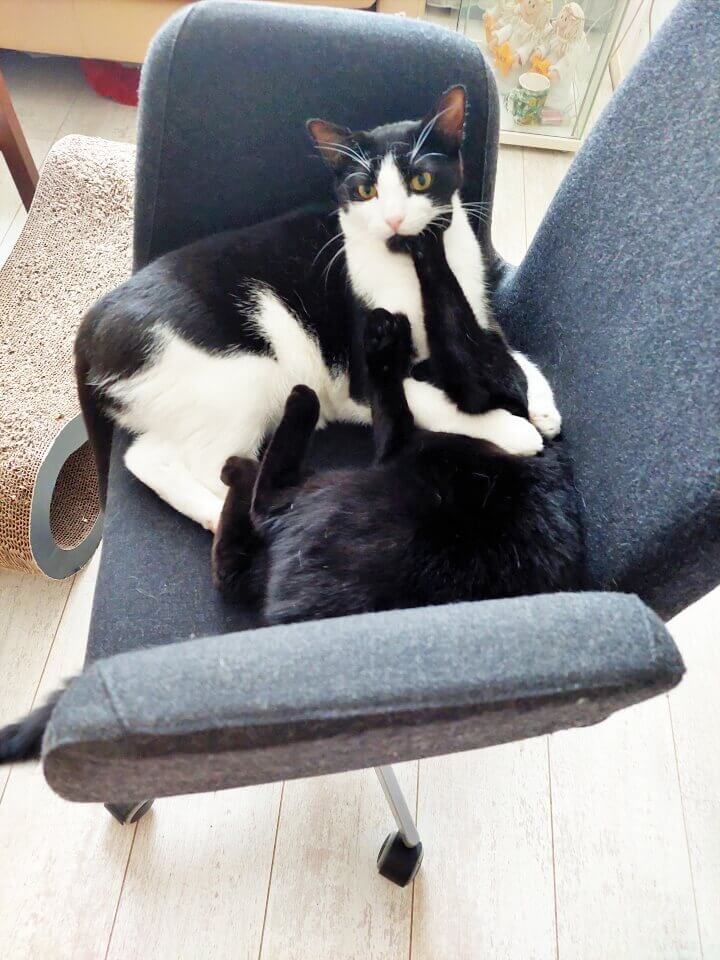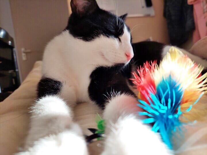 Onze lieve kittens werden op 27 juli 1 jaar en wat is dit jaar snel omgevlogen. Het is geweldig om die kleintjes te zien opgroeien tot schattige pubers. En alle fasen die ze doormaken! Toen ze klein waren vlogen ze overal achteraan zoals de dweil, sokken, broekspijpen etc. Die moesten ze gewoon aanvallen en aan gaan hangen. Nu kan ik gewoon dweilen zonder tussenstops. Ze hangen niet meer in de gordijnen en vitrage, hoogstens als ze een vlieg proberen te pakken.