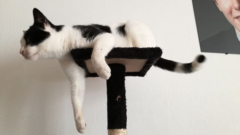 En als ze in een ondeugende bui is, dan klimt ze stoer op de krabpaal…