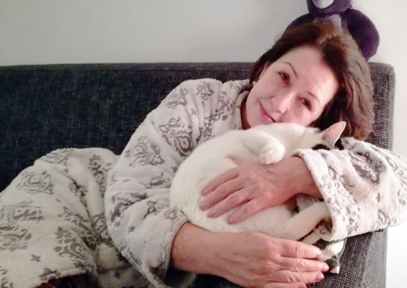 Soms kruipt ze zo heerlijk tegen mij aan, als een klein kindje ligt ze dan in mijn armen. Overal lees je dat katten er niet van houden om over hun buik geaaid te worden…Nou , die van mij wel!