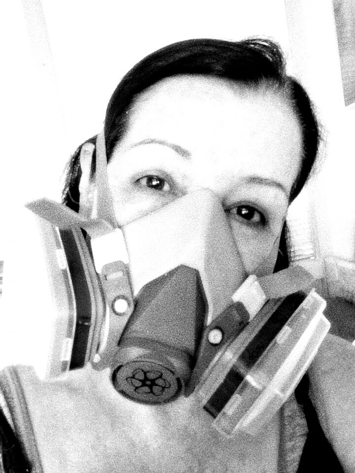Ook heb ik resin (en mica poeder) gebruikt en daar heb je weer plastic handschoenen bij nodig plus een masker. Niet zo een corona doekje, maar zo een masker die je goed zou staan als je in een horror film meespeelt.