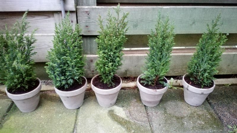 Deze leuke conifeertjes heb ik alvast neergezet. Nu hopen dat ze ook lekker gaan groeien.