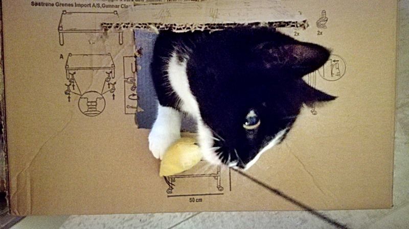 Ik kan Marie en Toulouse geen groter plezier doen dan met een lege doos. Die dozen liggen dan een paar weken in de kamer totdat er weer een nieuwe komt.