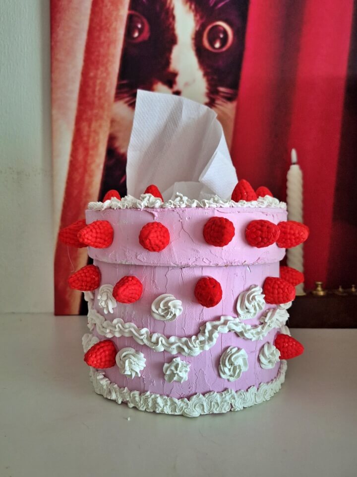 Een “taart” die je als tissuebox kan gebruiken.