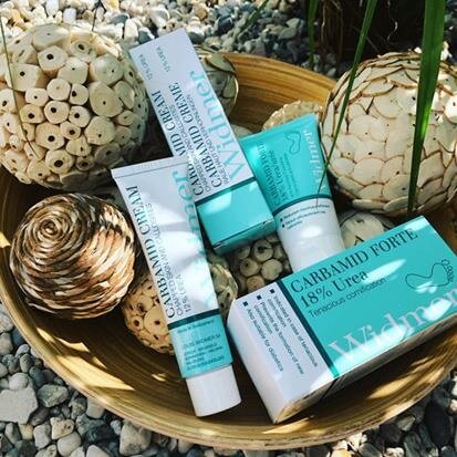 De Carbamide producten van Louis Widmer zijn o.a. ontwikkeld voor de verzorging van heel droge voeten en/of eelt. De lijn biedt twee verschillende producten, beide op basis van het intensief voedende, hydraterende en herstellende ingrediënt Ureum. Van nature maakt het lichaam deze stof aan, maar het wordt ook aan cosmetische producten toegevoegd waarbij vochtherstel van groot belang is. Ureum zorgt ervoor dat het vocht langdurig wordt vastgehouden in je huid. Het valt qua cosmetisch ingrediënt onder de zogeheten ‘Natural Moisterizing Factors’ (NMF’s) en zorgt ervoor dat de voetenhuid heel intensief gehydrateerd wordt. Als bijkomende eigenschap verwijdert het ook overtollige, droge huidschilfers en laat het de voetenhuid daardoor weer fluweelzacht en soepel aanvoelen.