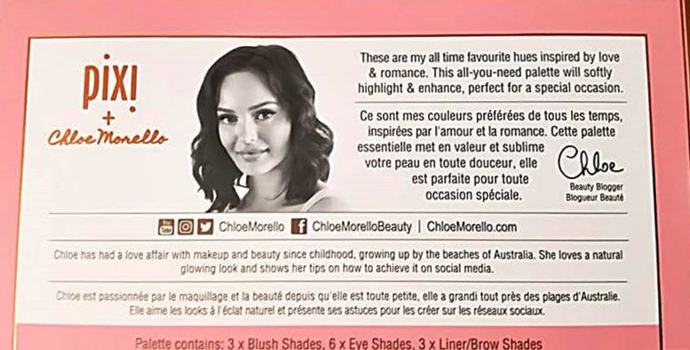 Het Palette Chloette is vernoemd naar de oprichtster Pixi en Chloe Morello (Australische vlogger). volgens haar het ideale palette voor een “date night” of je trouwerij. (Maar dat mag je natuurlijk zelf bepalen, mocht je die stappen al achter de rug hebben ;))