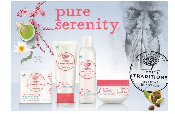 Treets Traditions ziet het als haar missie om wereldwijde tradities op het gebied van lichaamsverzorging te herontdekken en bereikbaar te maken voor iedereen. Tijdens één van hun ontdekkingstochten stuitte Treets Traditions op de rijke Japanse badcultuur “Onsen”. Geïnspireerd op deze eeuwenoude tradities lanceert het merk de nieuwe Pure Serenity-lijn, verrijkt met bijzondere natuurlijke ingrediënten. Beleef de Japanse schoonheidstradities in je eigen badkamer!