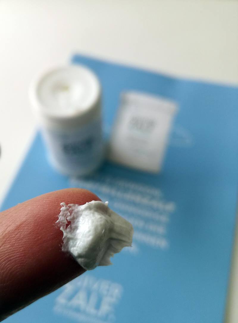 De crème blijft lang wit en ondoorzichtig, maar ach, wie ziet het? Ook wel handig, want je kan zien hoeveel en waar je het gesmeerd hebt. Wij smeren het niet op ons gezicht, toch? Hoewel, breng mij niet op ideeën, straks blijkt deze Zuiverzalf het anti-aging middel van de eeuw te zijn. 🙂